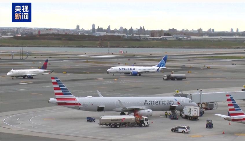 美国纽约肯尼迪国际机场因人员配备问题面临地面停飞 图片来源:央视新闻