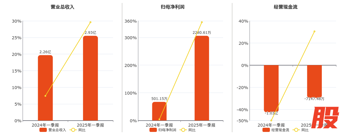 公司营业总收入为2.93亿元,较去年同报告期营业总收入增加6700.13万元,实现2年连续上涨,同比较去年同期上涨29.59%。归母净利润为2280.61万元,较去年同报告期归母净利润增加1779.46万元,实现2年连续上涨,同比较去年同期上涨355.08%。经营活动现金净流入为-7147.48万元,较去年同报告期经营活动现金净流入增加3132.39万元。