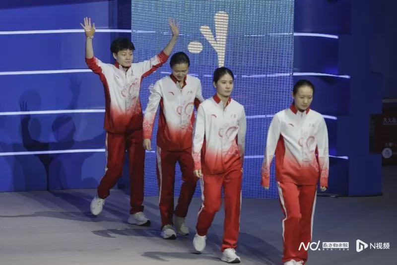 陈艺文率领三位队友率先在双人3米板比赛中登场。南都N视频记者 黎湛均 徐杰 摄
